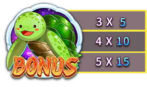 During the main game, 3 or more The number of BONUS GAME is determined by the number of 3 symbols - 5 spins; 4 symbols - 10 spins; 5 or more symbols - 15 spins. |