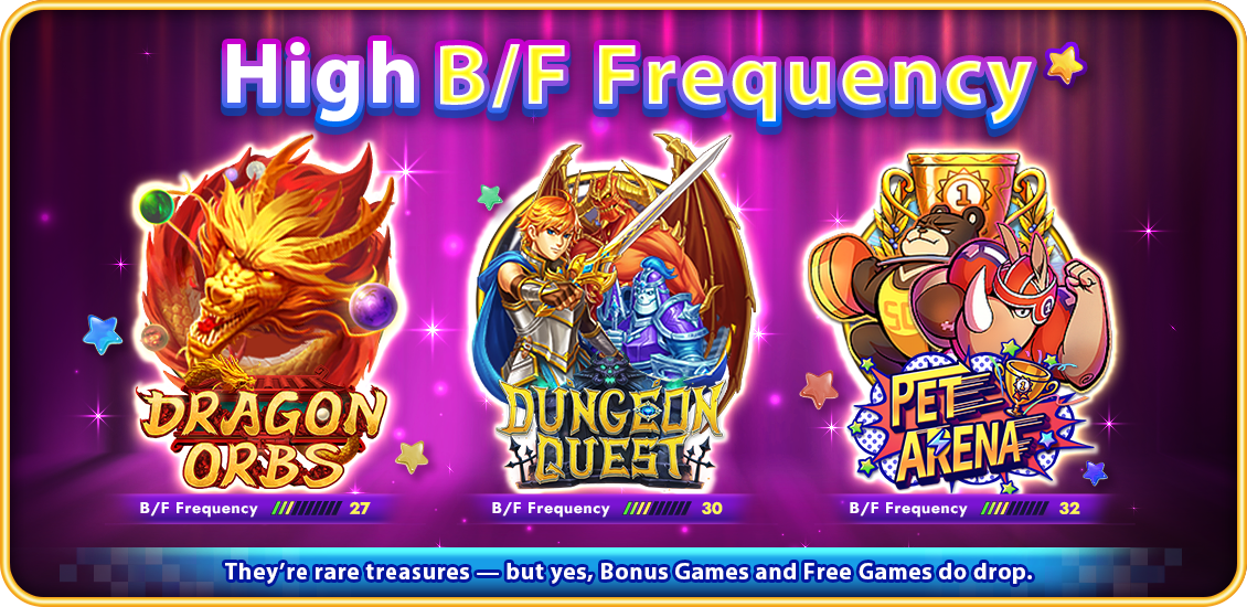 A high B/F Frequency means you’ll see bonus rounds more often, which usually come with bigger prizes.